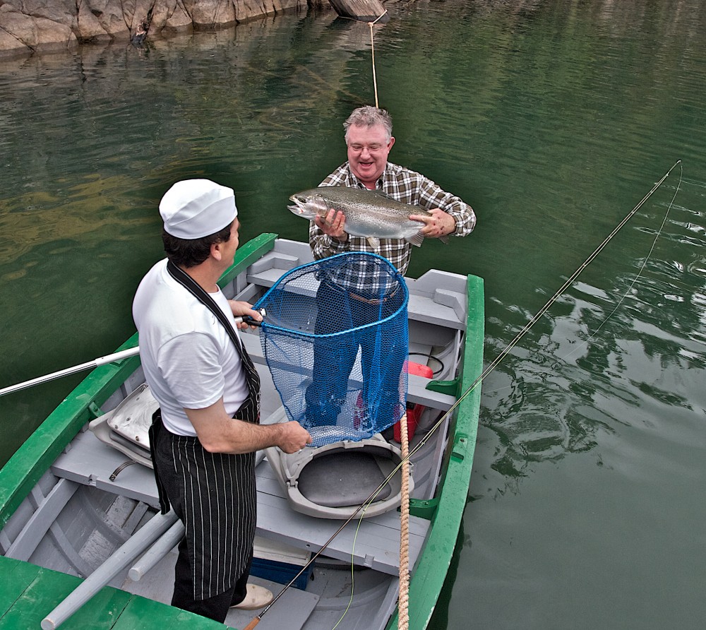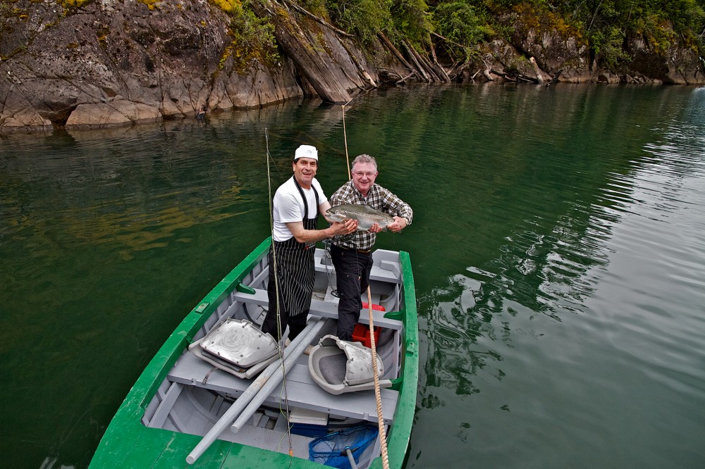 SO THANKS TO CHEF TURNED GUIDE LUIS, PAT CAUGHT THIS 14 LB RAINBOW FROM PUMA II