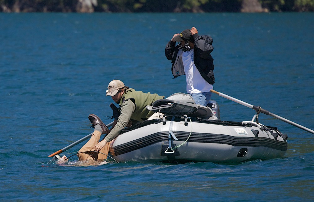 FISHING ONE OF THE SEVEN RIVERS THAT FLOW INTO LAKE YELCHO