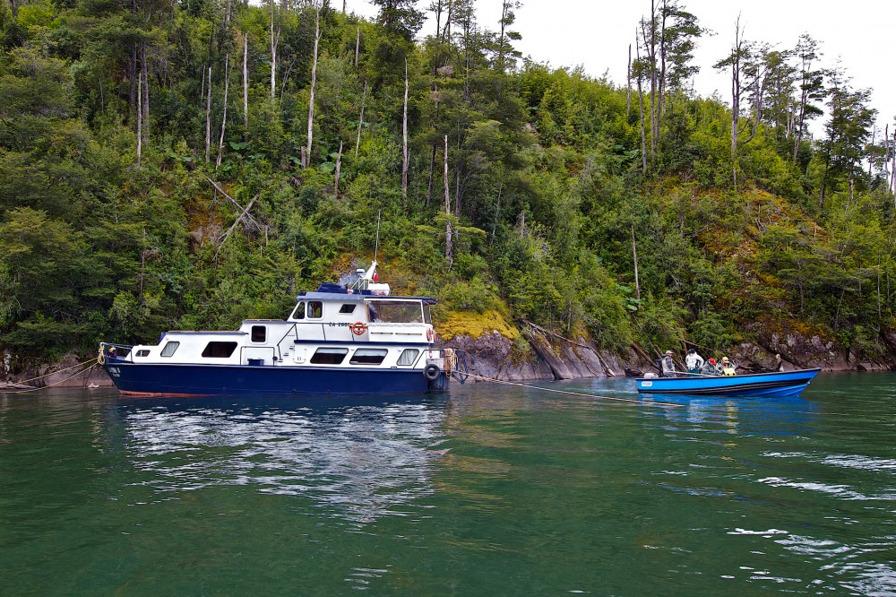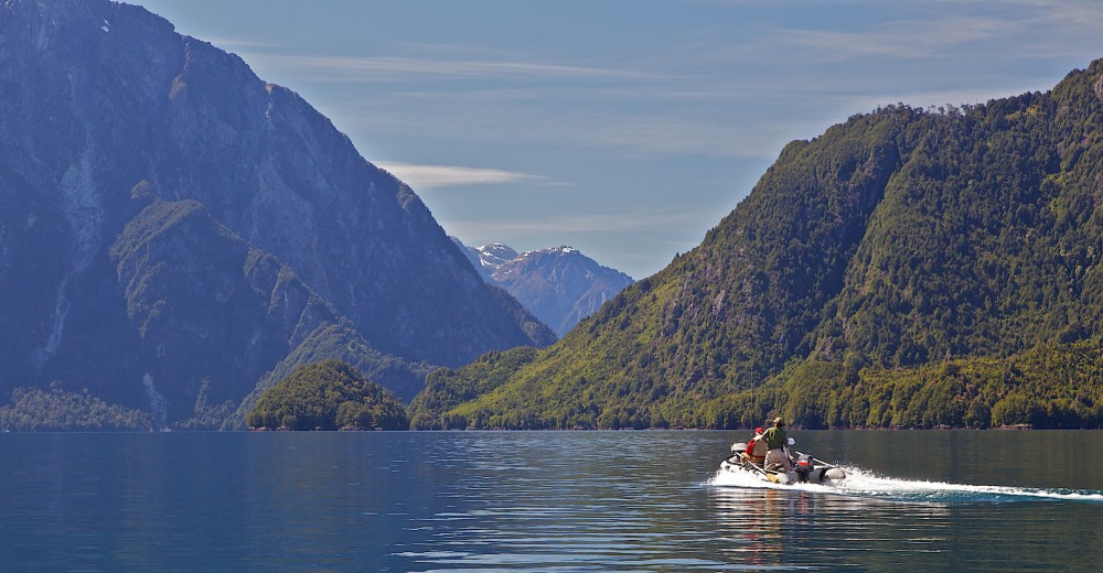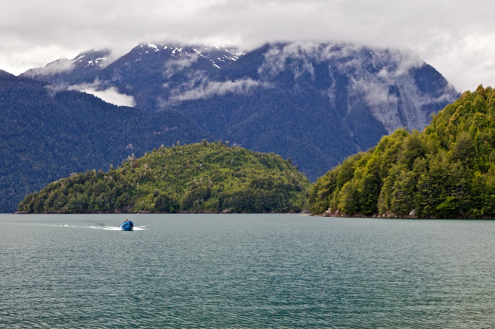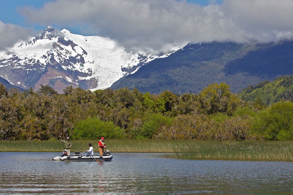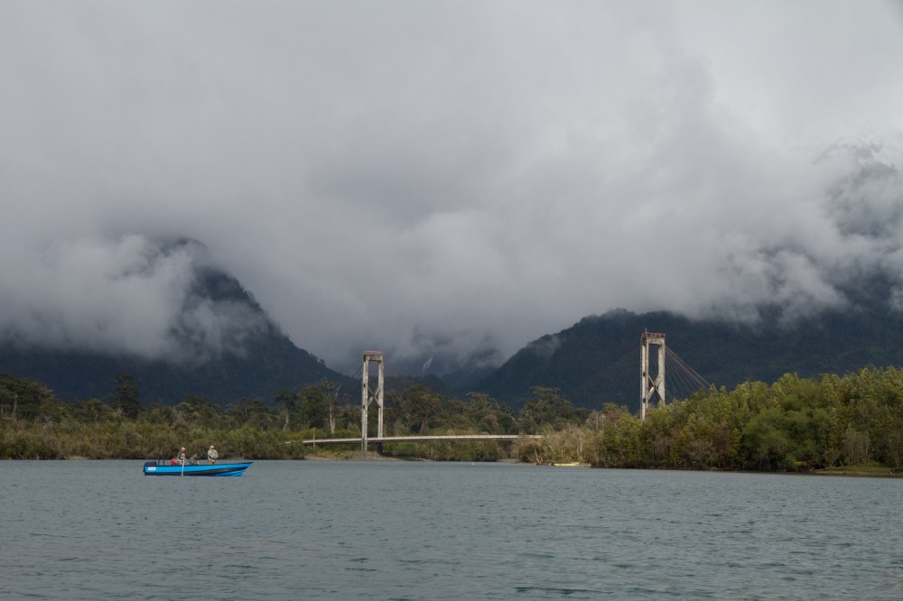 BLANCO RIVER ESTUARY WITH MICHIMAHUIDA GLACIER (PUMALIN PARK) IN BACKGROUND