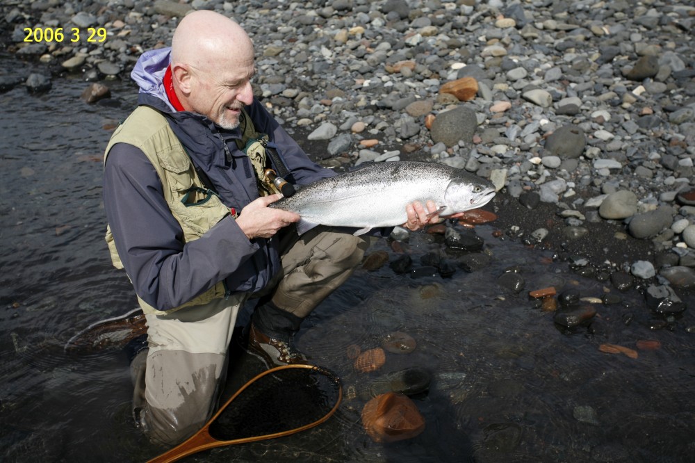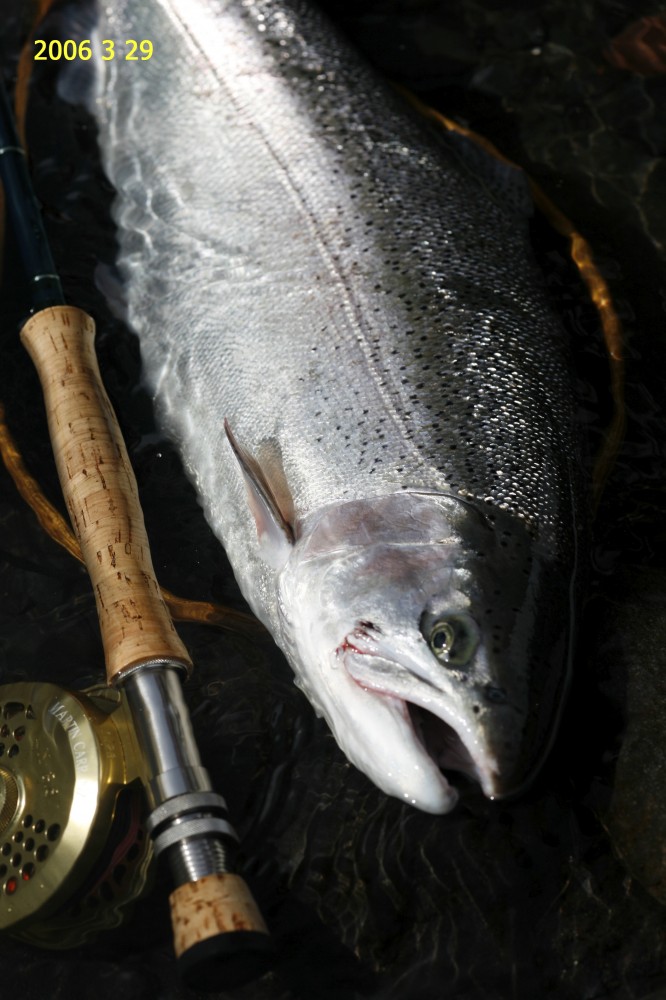 STEELHEAD -- RIO BLANCO ESTUARY -- 06 (WE HAVE NOT BEEN ABLE TO FISH THE ESTUARY SINCE THE CHAITEN VOLCANO ERUPTED IN MAY OF 08 -- BUT IT FINALLY LOOKED GOOD AND FISHED FANTASTIC THE LAST OF APRIL OF 10)