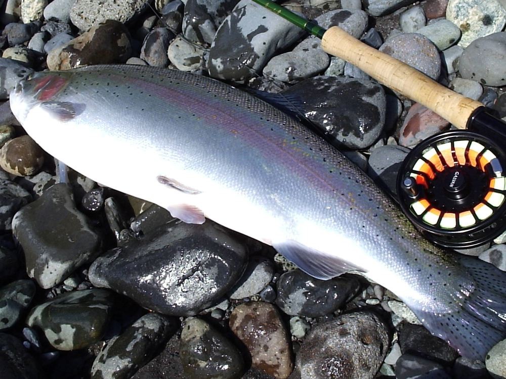 STEELHEAD -- RIO BLANCO ESTUARY -- 07 (WE HAVE NOT BEEN ABLE TO FISH THE ESTUARY SINCE THE CHAITEN VOLCANO ERUPTED IN MAY OF 08 -- BUT IT FINALLY LOOKED GOOD AND FISHED FANTASTIC THE LAST OF APRIL OF 10)