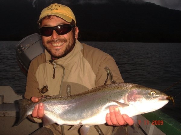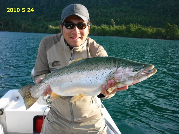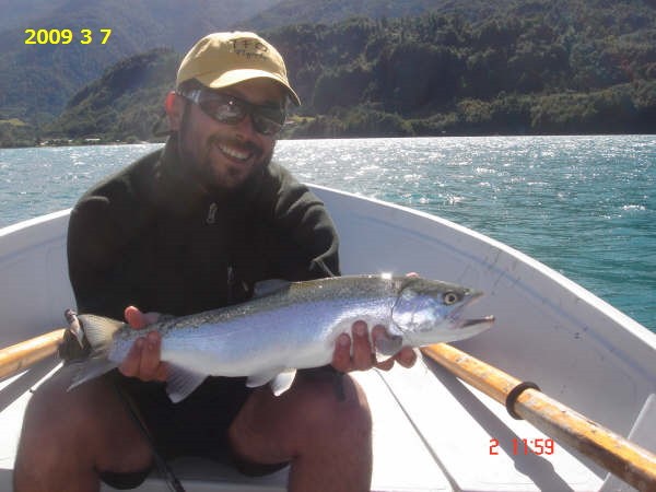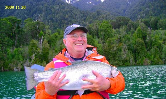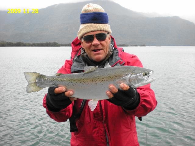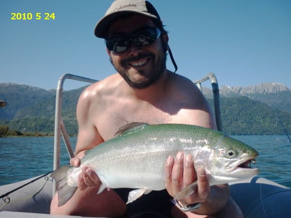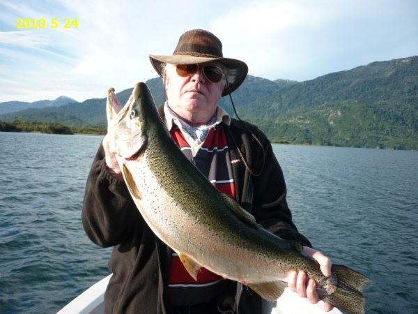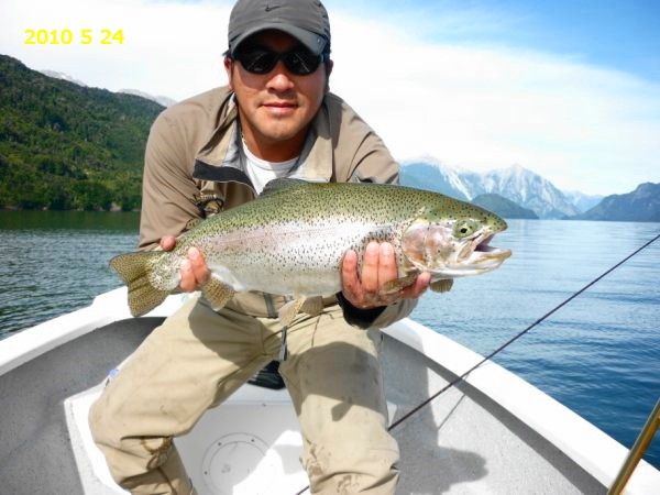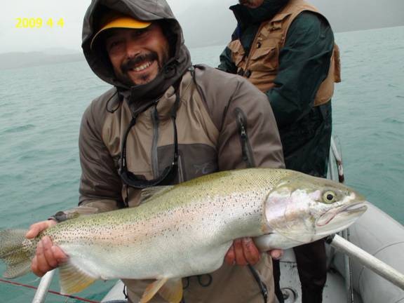 TROPHY RAINBOW - LAKE YELCHO -- CAUGHT ON THE NEXT CAST AFTER PREVIOUS FISH. THIS FISH IS QUITE OLD, AN "ABUELO" -- 09