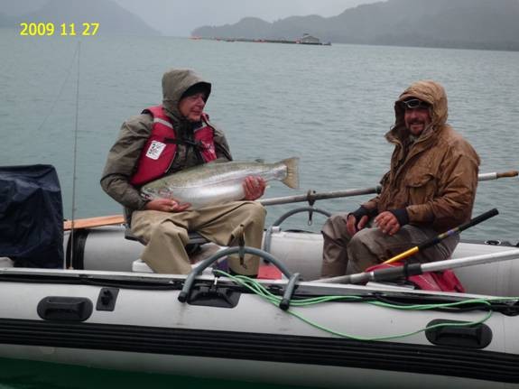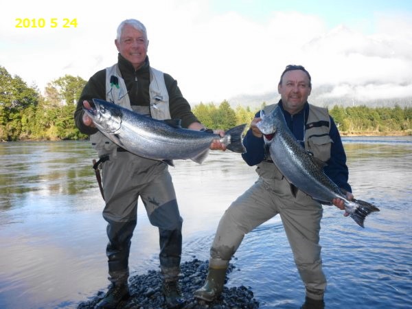 DOUBLE ON SMALLER CHINOOKS ON YELCHO RIVER -- THIS GROUP CAUGHT 12 THAT AFTERNOON IN FEB. 2010 (DATE ON PHOTO WAS DATE SENT TO ME)